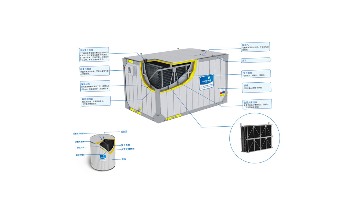蓄冰技术是在夜间电价低谷时通过制冷设备将冷能以冰的形式存储于蓄冰设备内部,在白天用电高峰时将冰融化为低温水用于供冷需求。